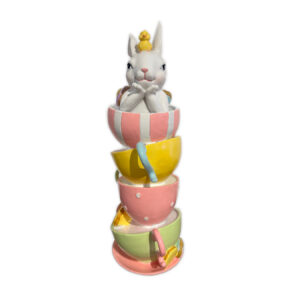 Enfeite coelha na torre de xícaras