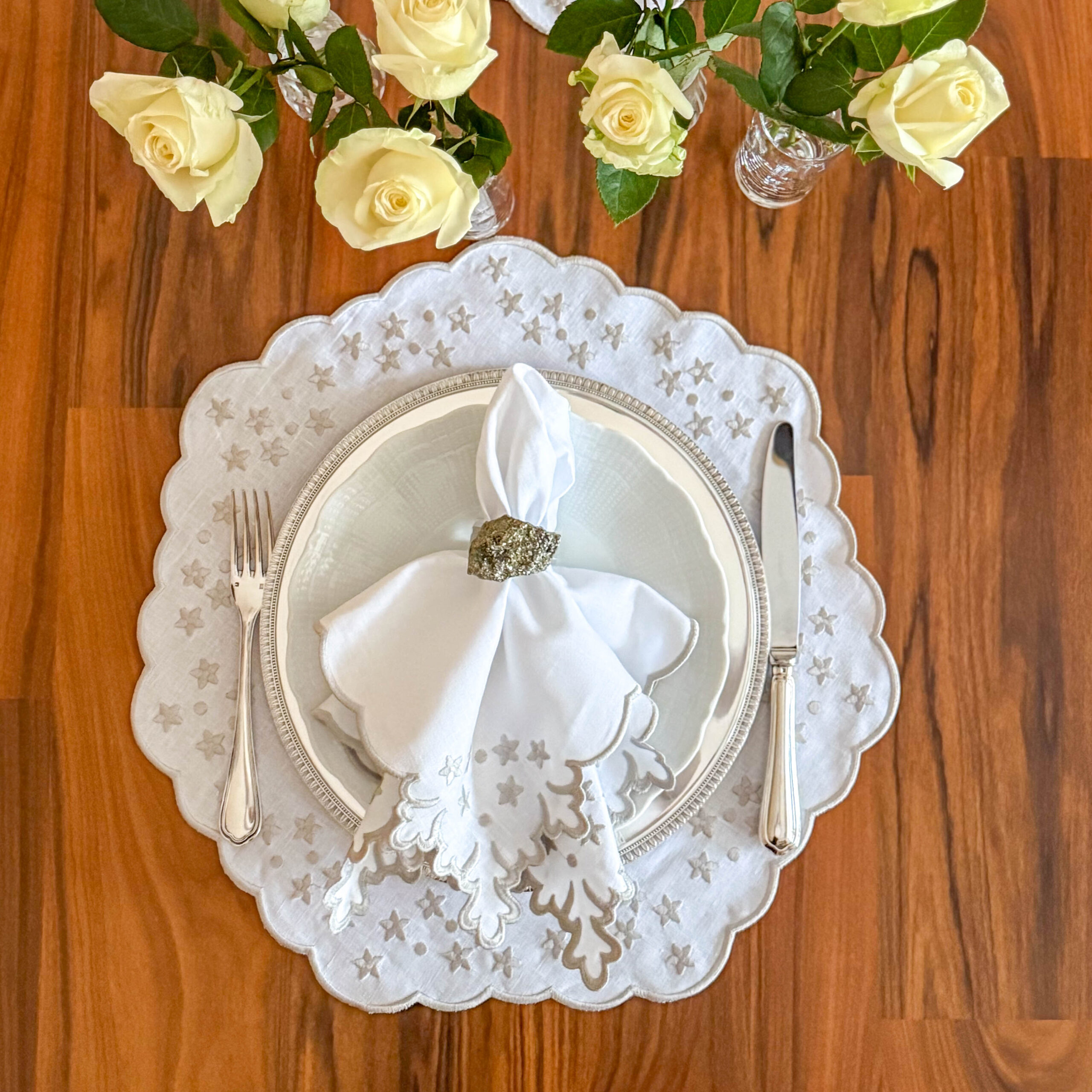 Cjto Jogo Americano e Guardanapo linho Constelação prata- Tati Pilão