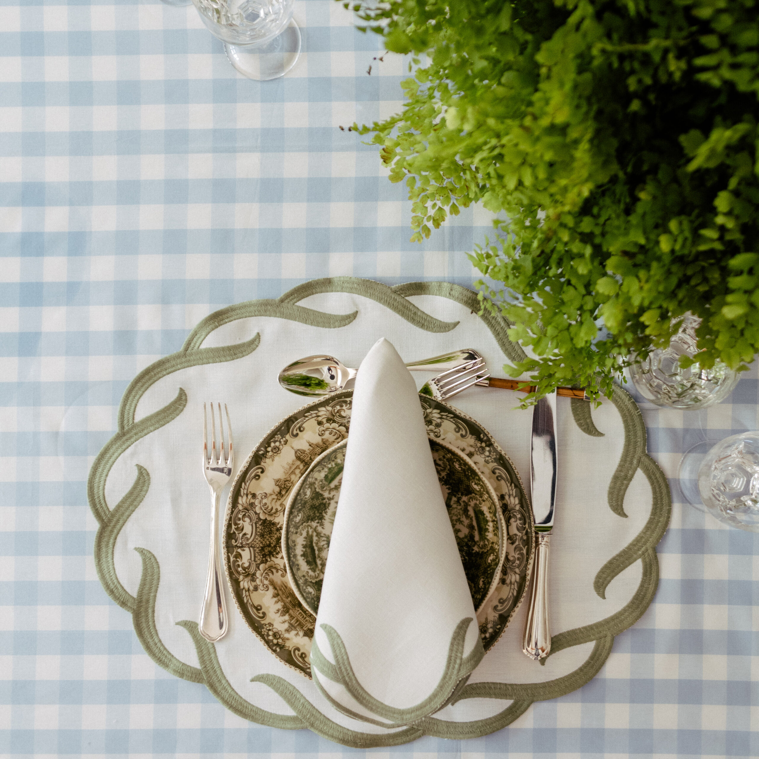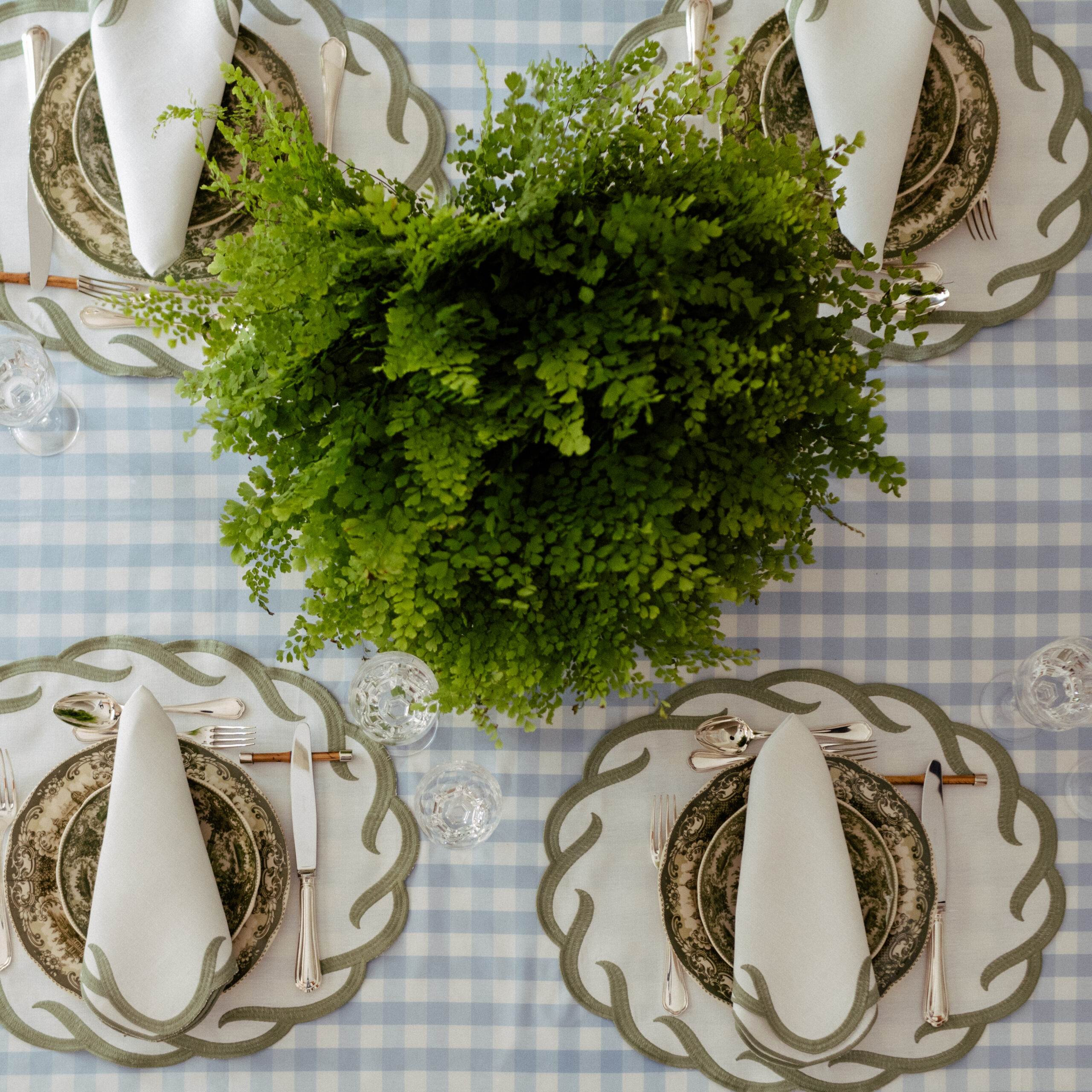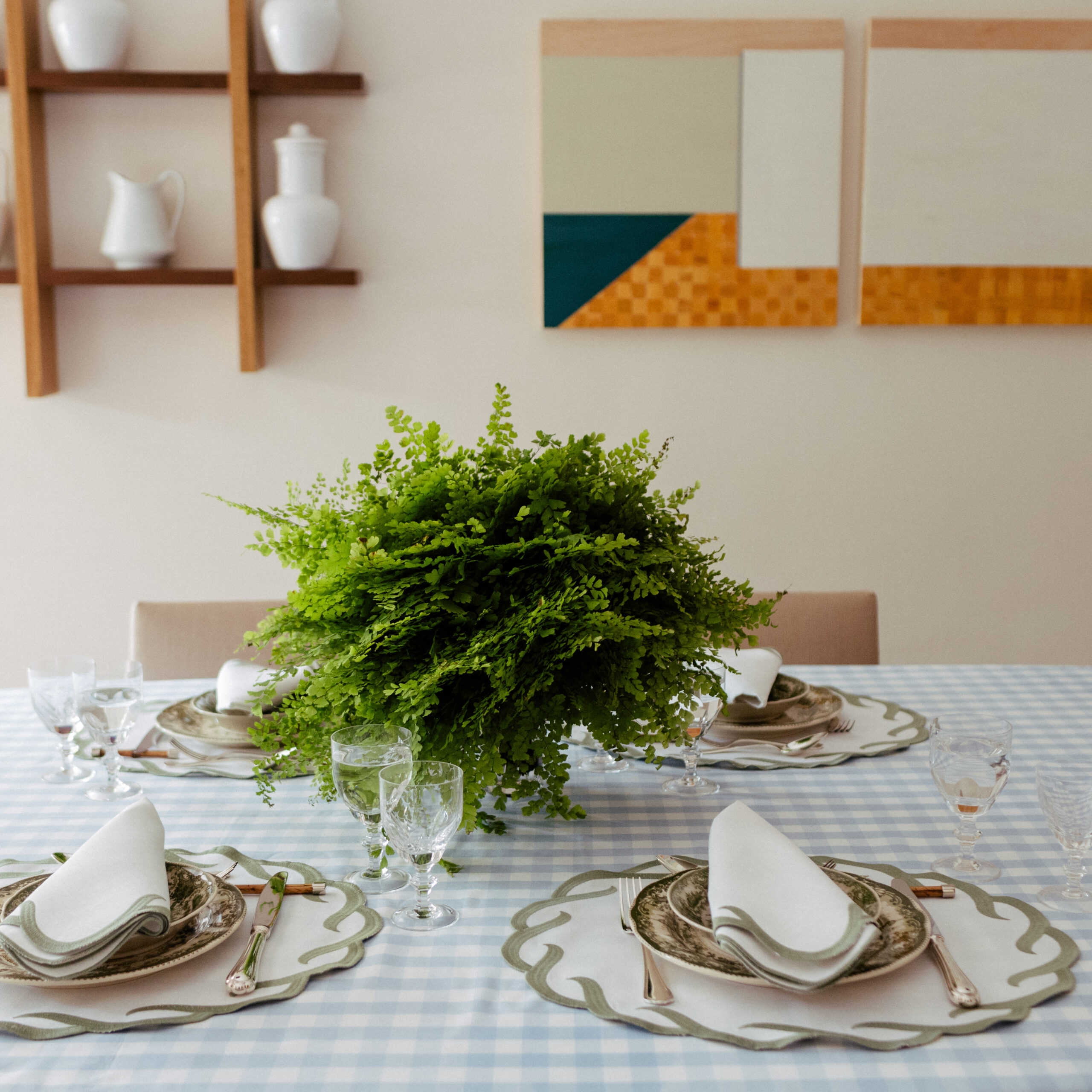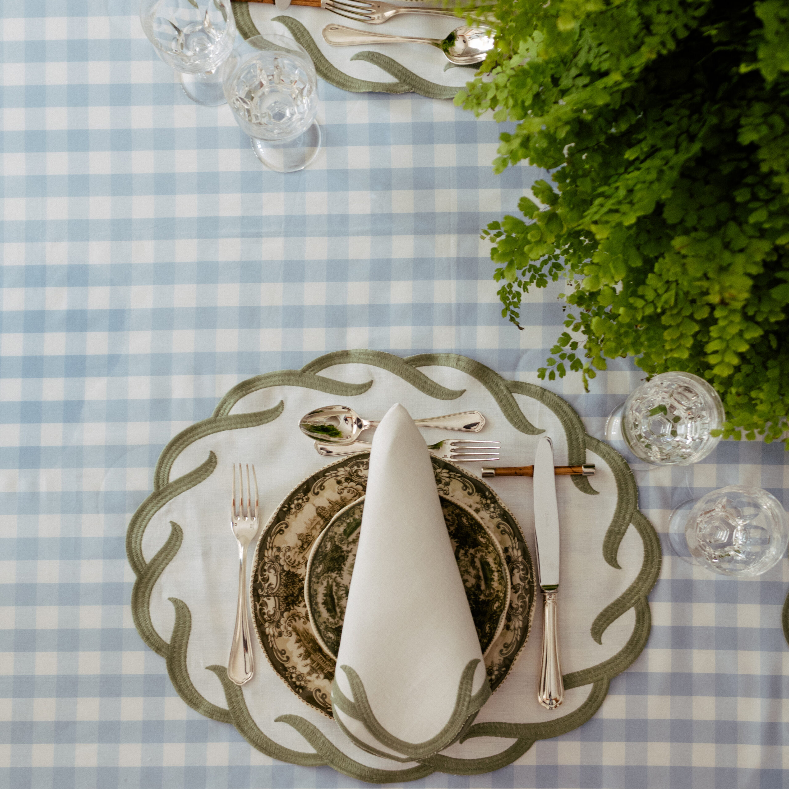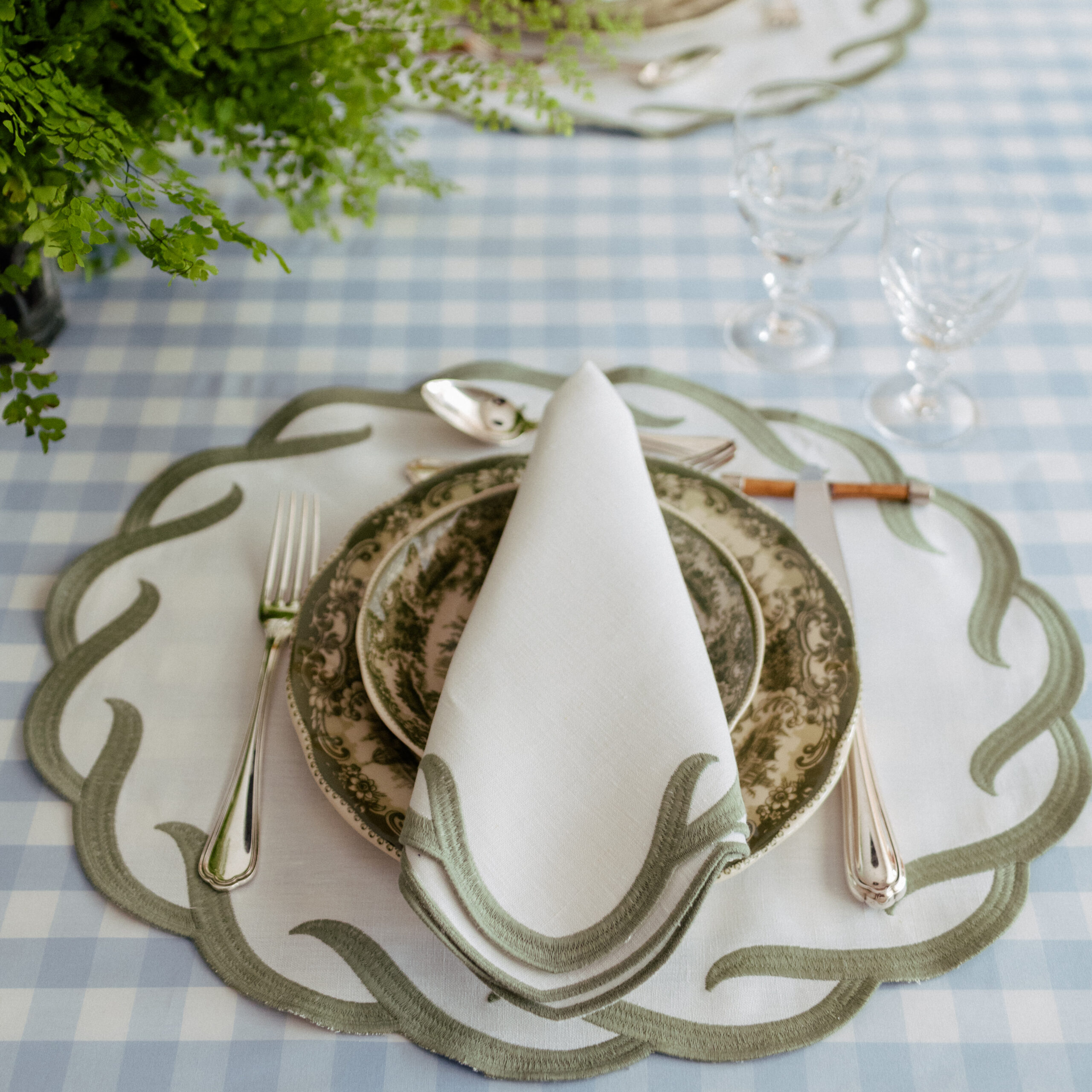 Cjto jogo americano e guardanapo linho Branco fluir verde celadon