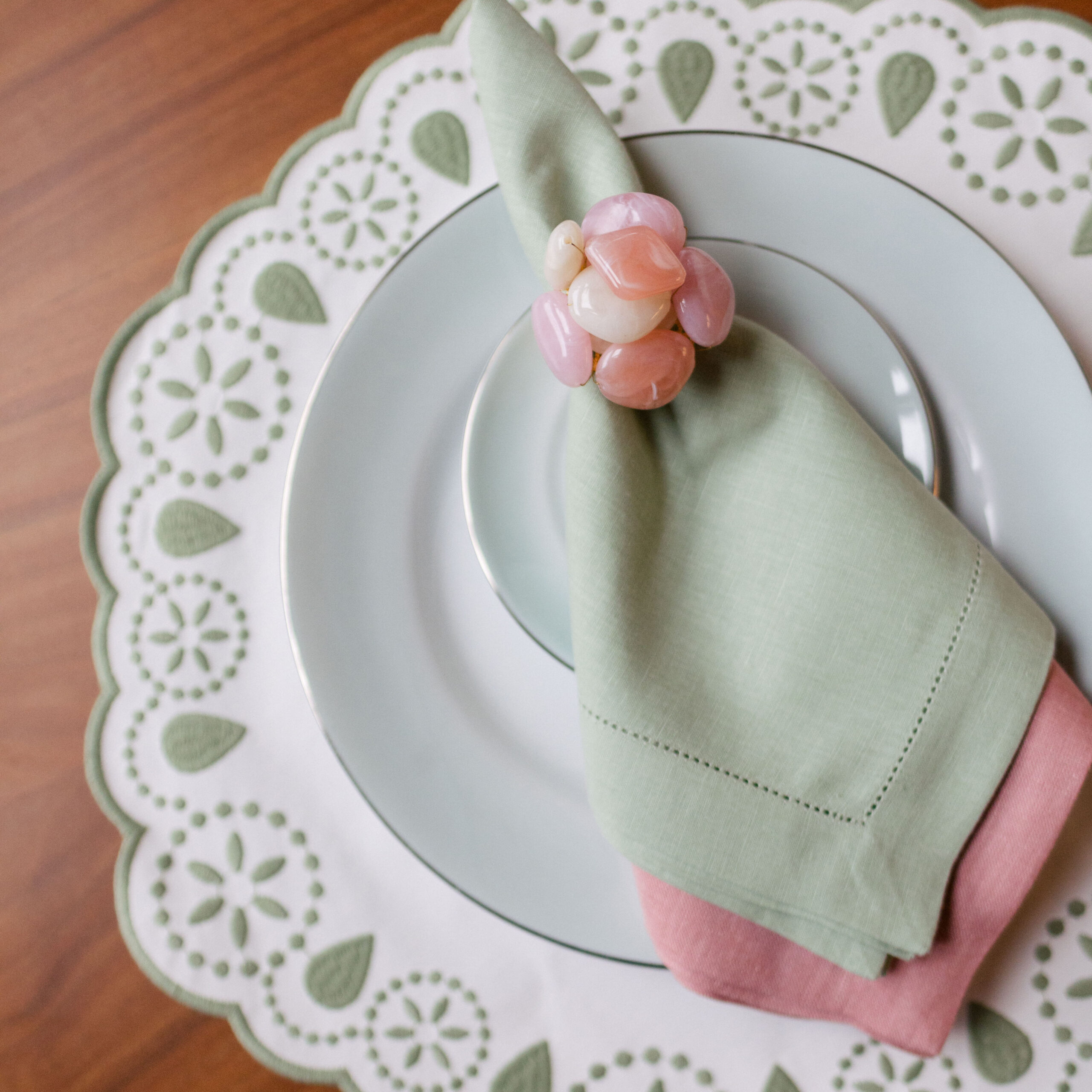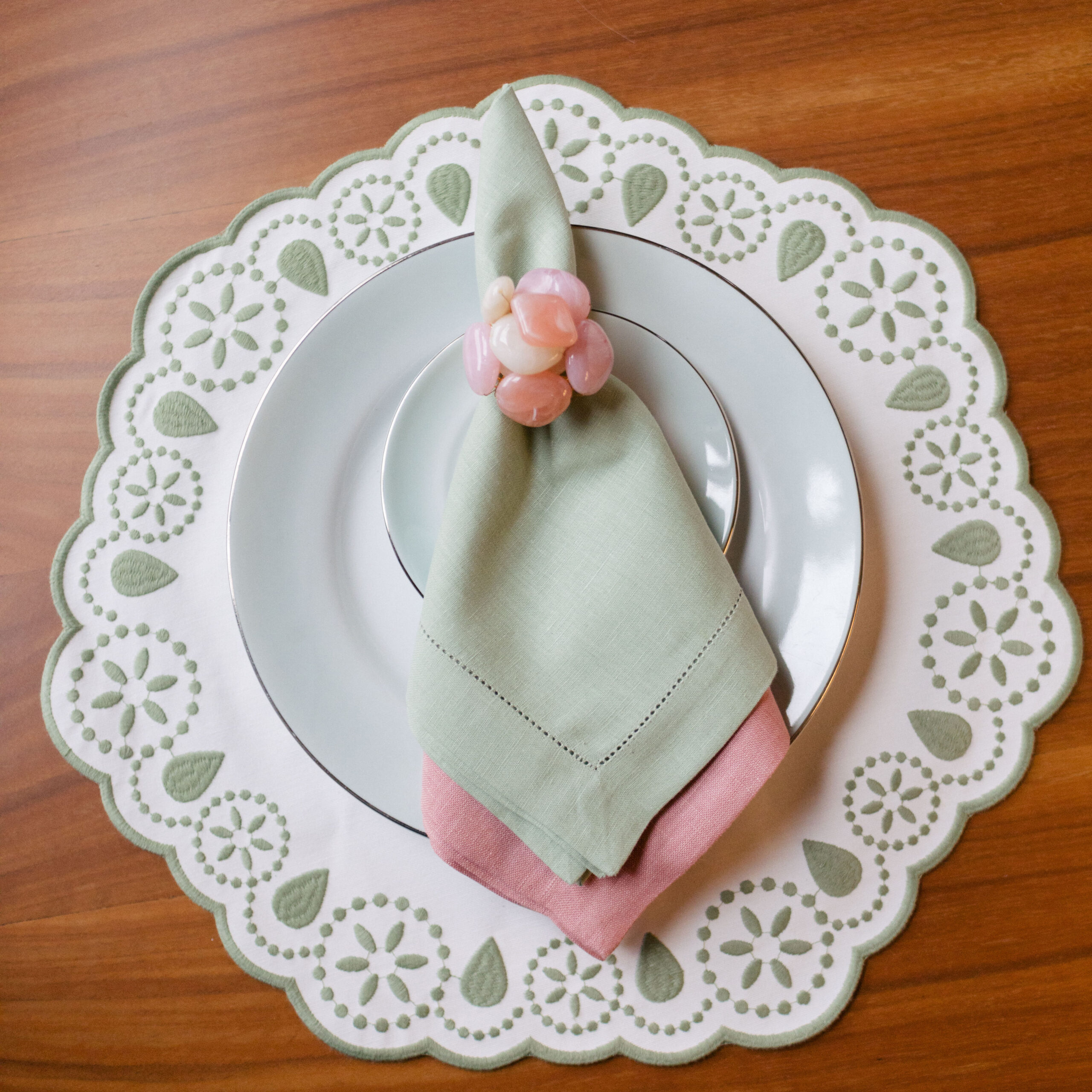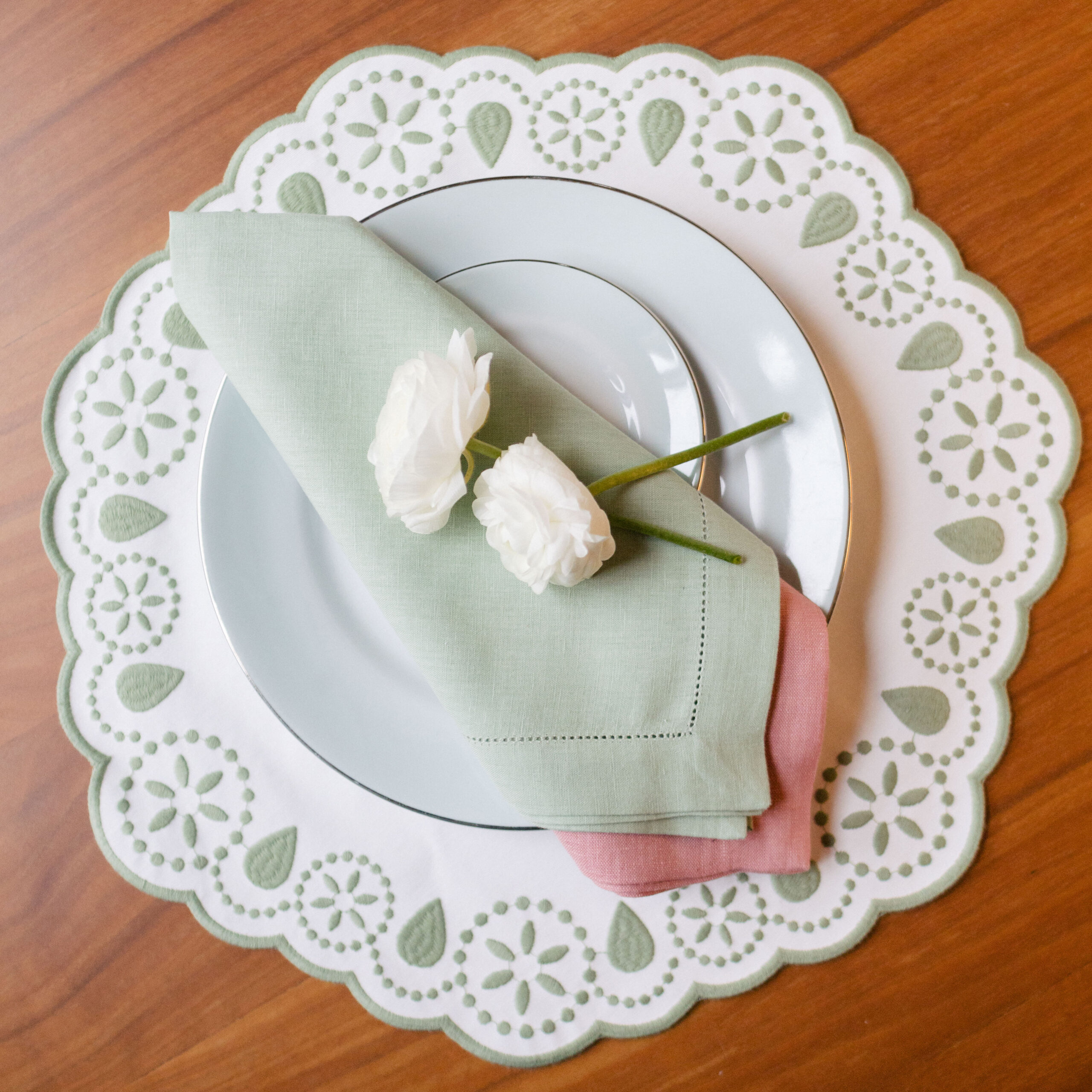 COR: Branco com bordado Verde Celadon