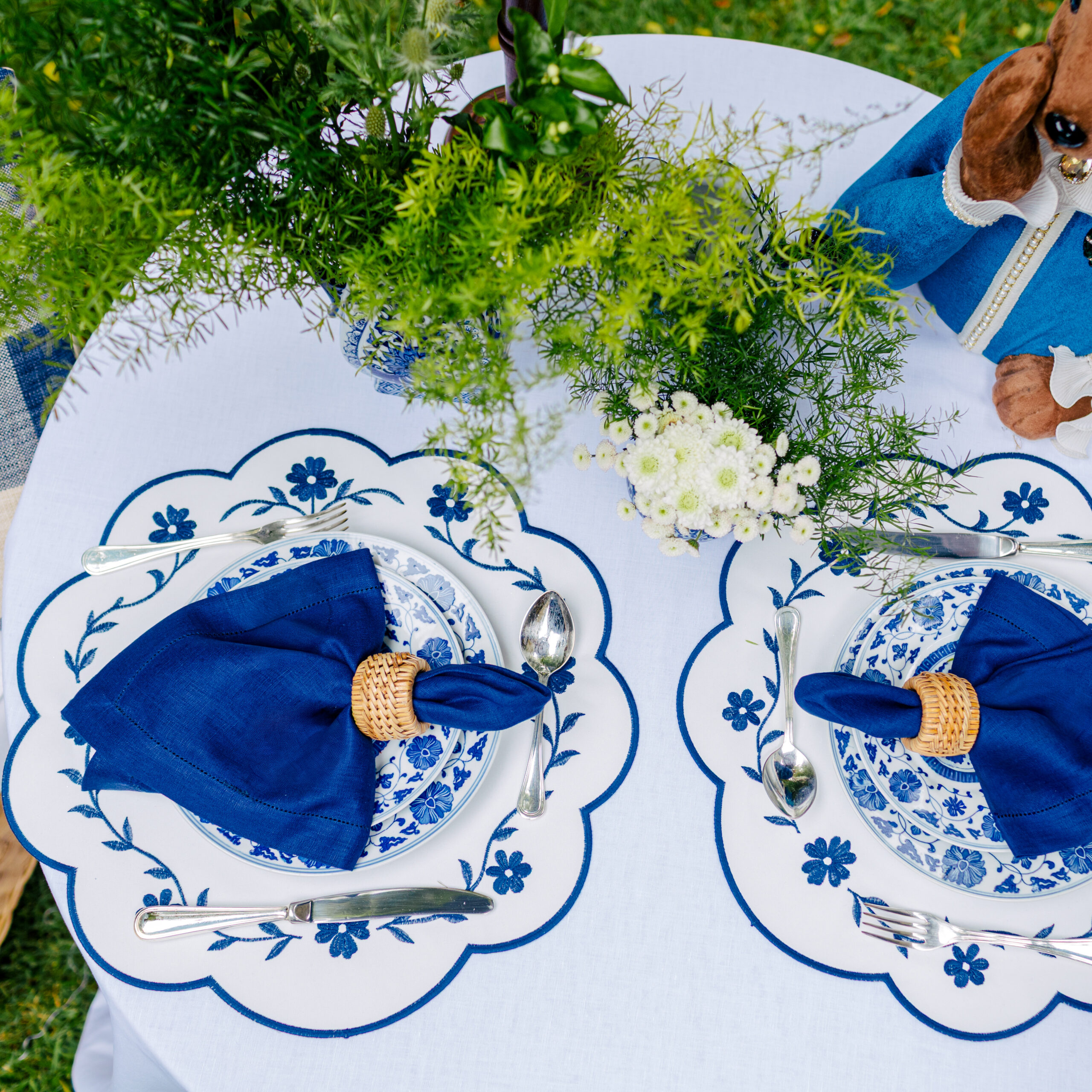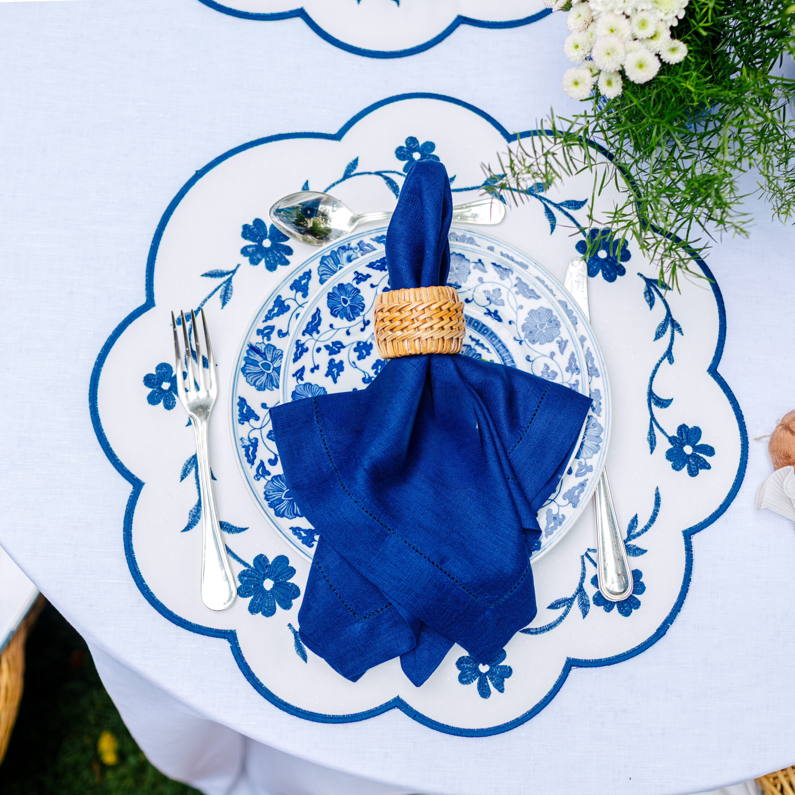 Jogo Americano Impermeável Ramos Azul Marinho