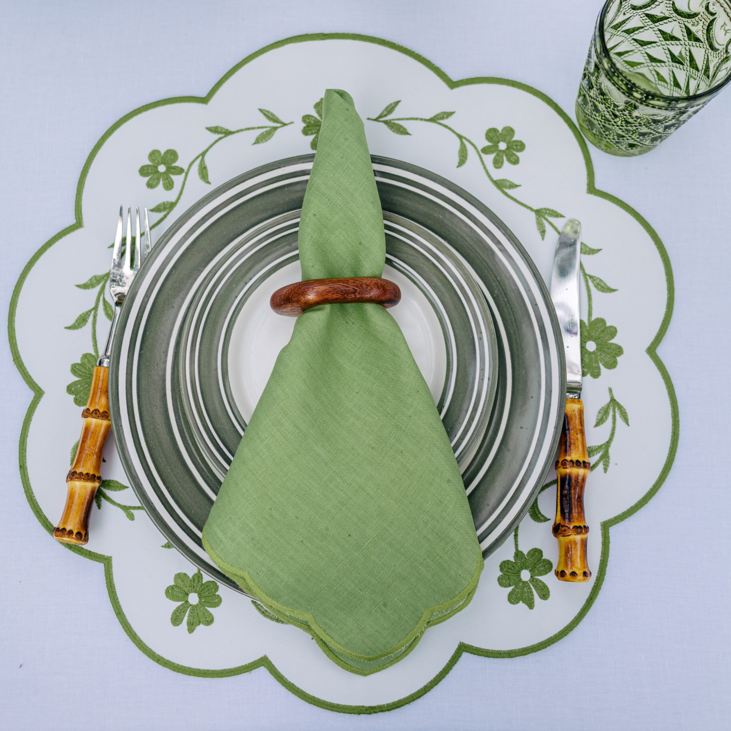 jogo americano impermeável ramos verde folha