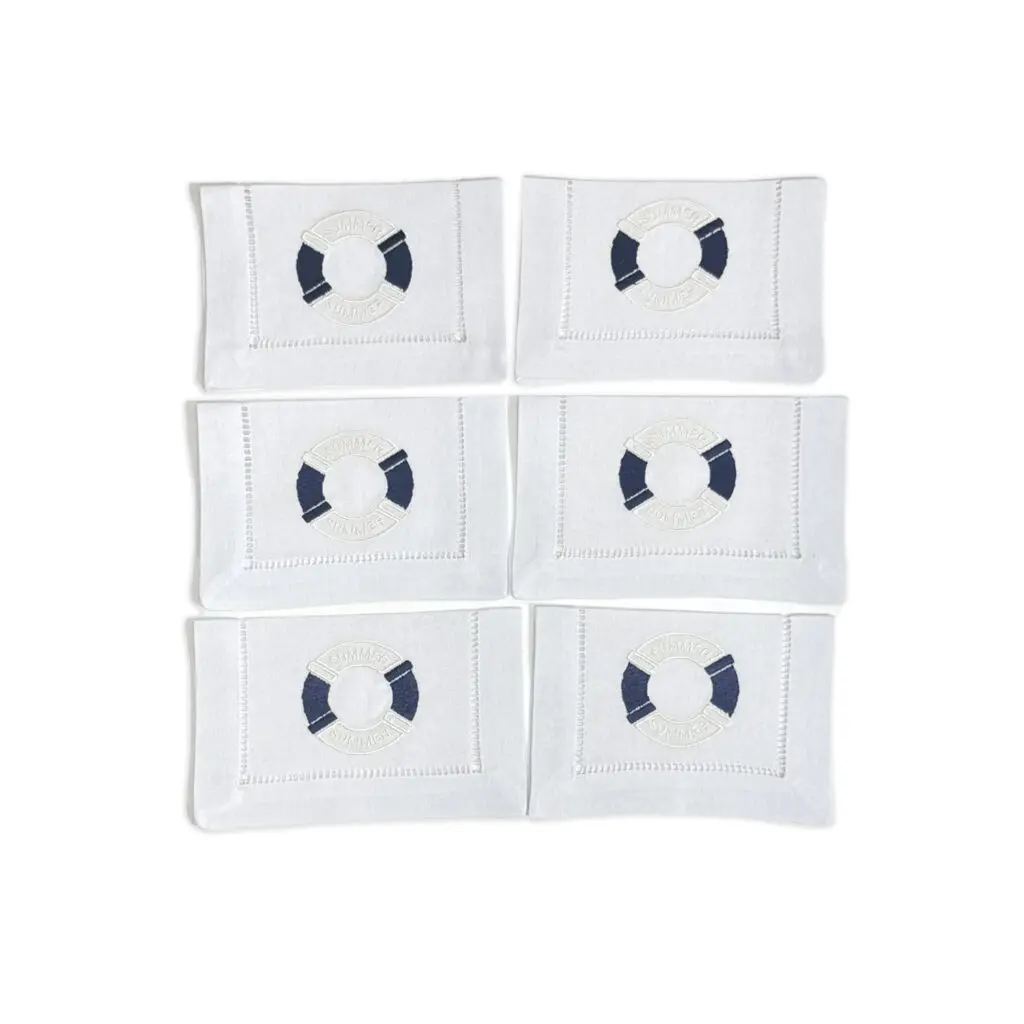Kit com 6 Guardanapos de Aperitivos Linho Boia Azul