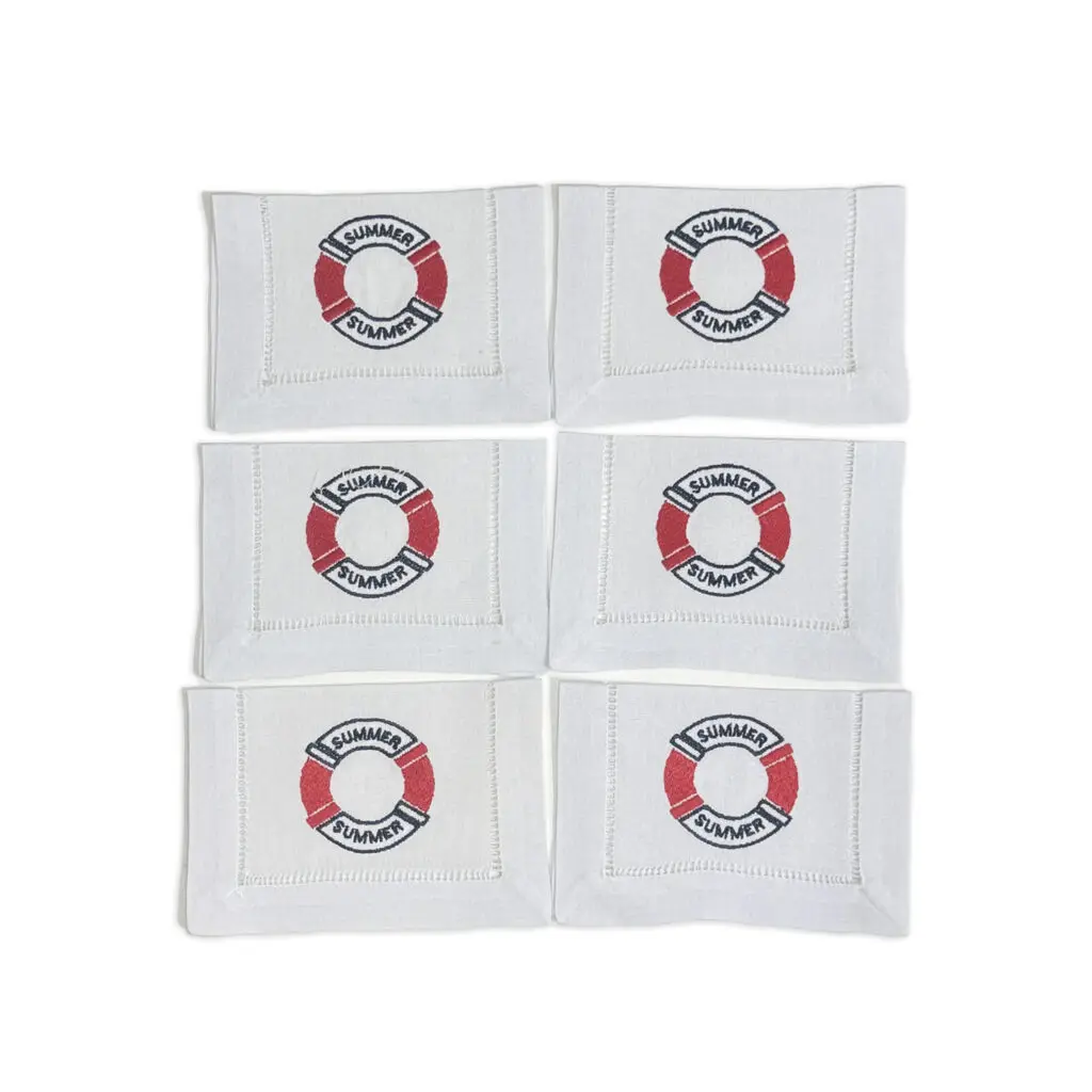 Kit com 6 Guardanapos de Aperitivos Linho Boia Vermelho