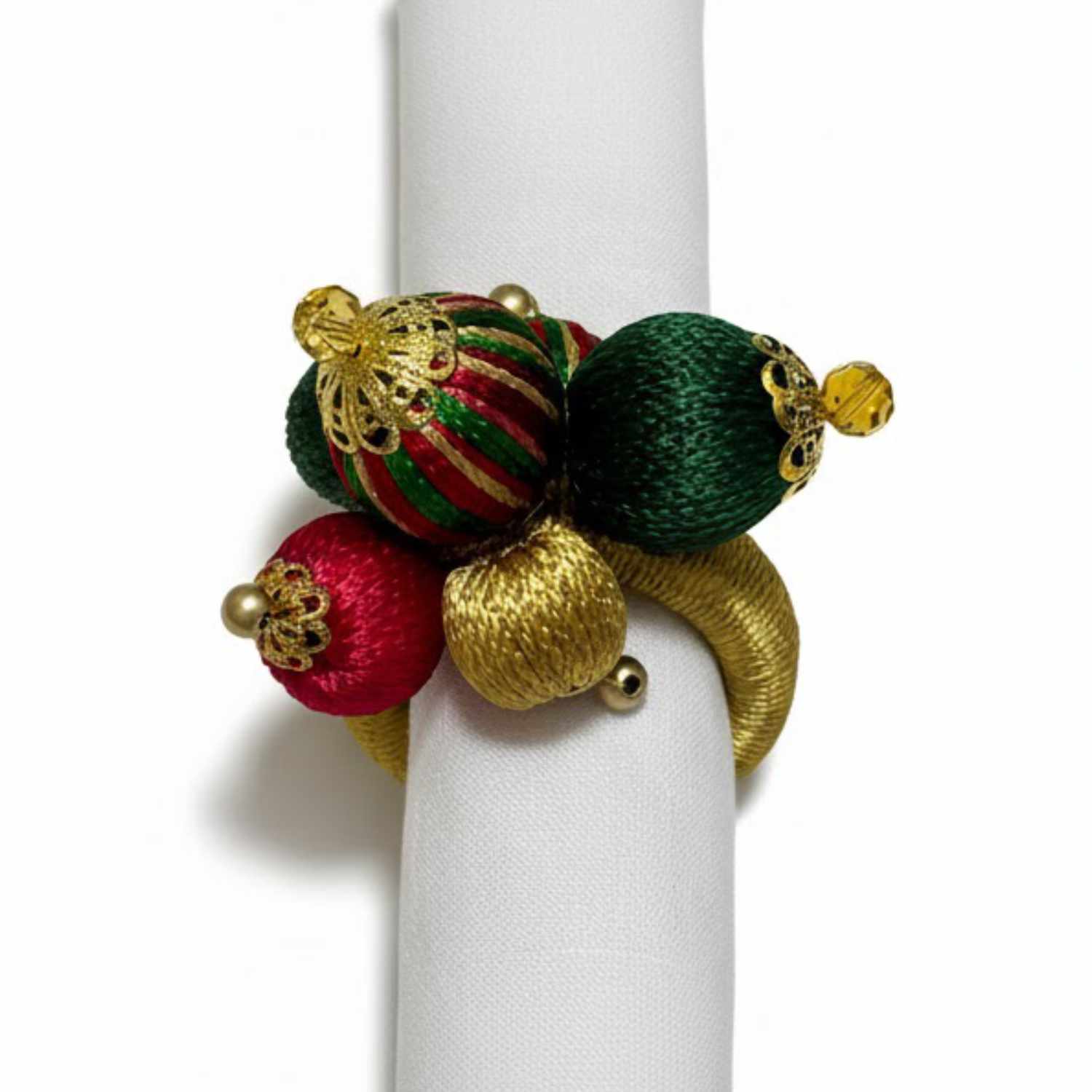 porta guardanapo anel com bolas vermelho e verde