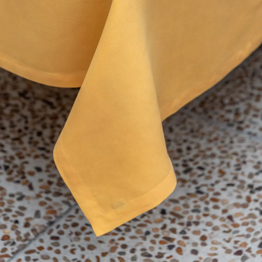 Toalha de Mesa Linho Amarelo com Barra de 3 Cm