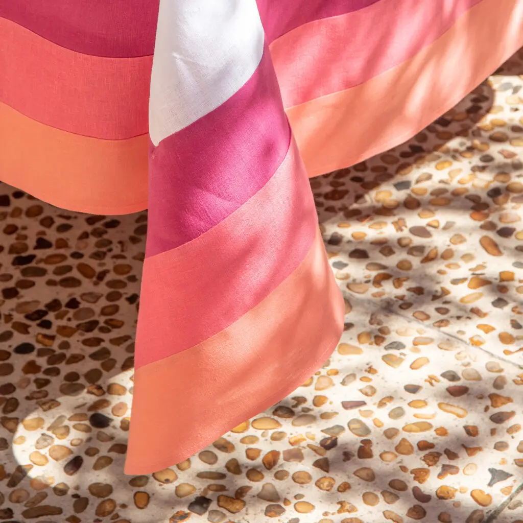 Toalha de Mesa Linho Branco com Barrado Pink Rosa Lavanda